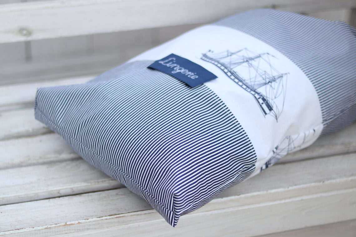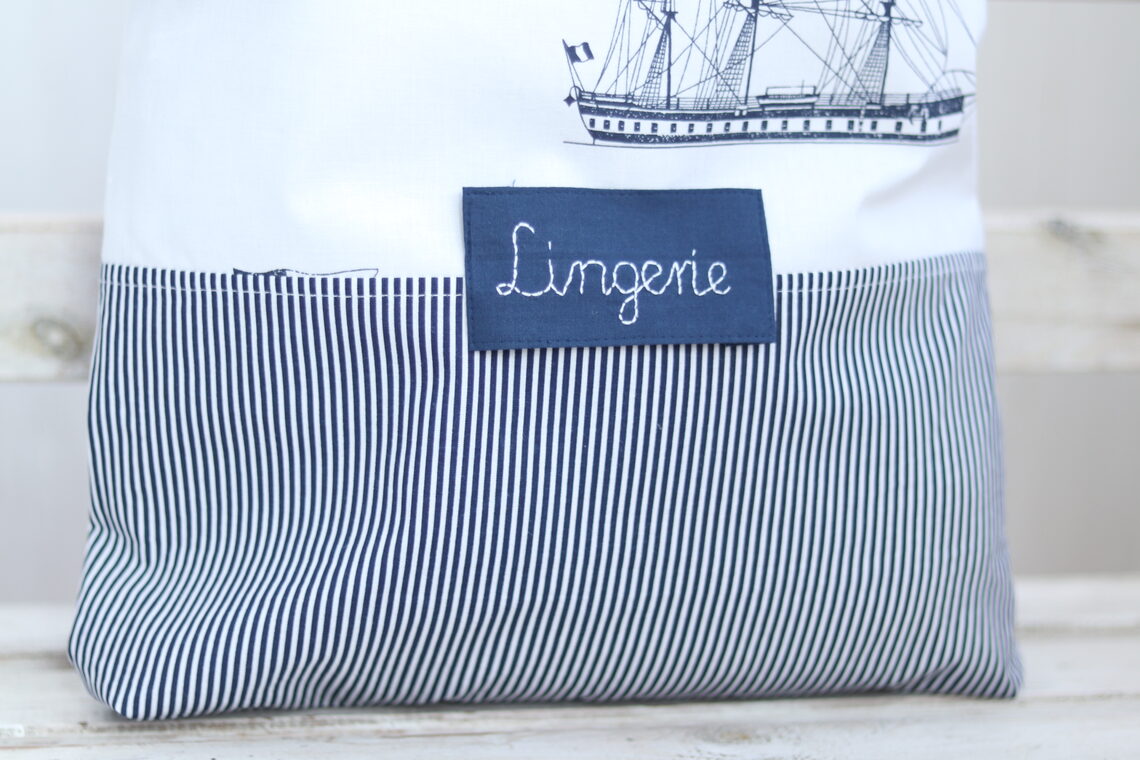 Tumši zilas svītras šaura apakšveļas soma, izgatavota no kokvilnas auduma un ar rokām izšūtu pielāgotu etiķeti. Soma noderēs ceļojuma laikā vai mājās kā apakšveļas soma, ceļojumu maciņš, netīro drēbju soma, pidžamas soma. To var izmantot kā apakšveļas organizatoru netīrajām drēbēm mājās vai koledžā. Ja jūs man paziņosiet piezīmē, es pievienošu jūsu izvēlēto vārdu. Ja lauks tiks atstāts tukšs, es izšuvīšu fotoattēlā redzamo tekstu.