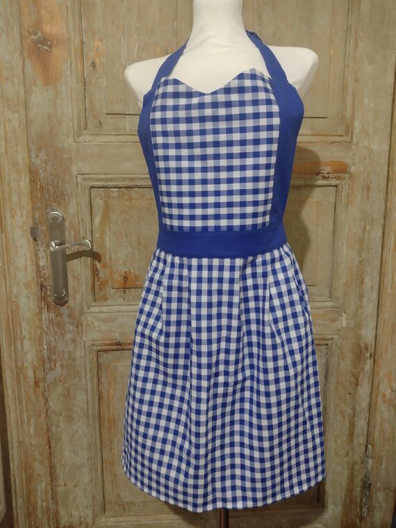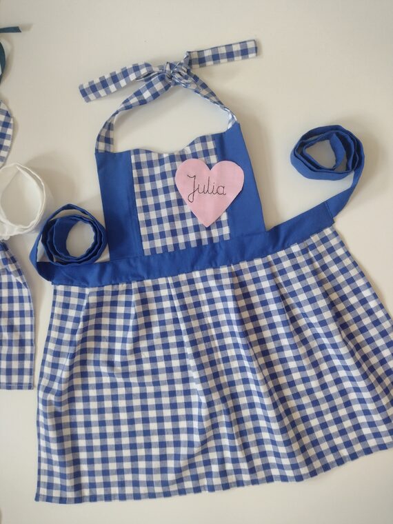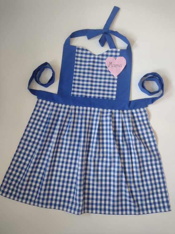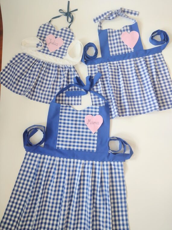 Kuchynské zástery, sada pre mamu a dcéru alebo vnučku a starú mamu. Krásna sada troch záster z bavlny. Ideálny darček na Deň matiek, Vianoce, Valentína. Originálny darček. Vyrobené z modro-bielej kockovanej bavlny.